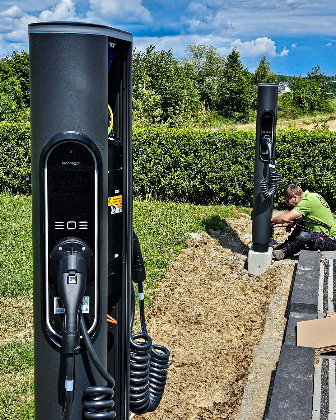 An einem Firmenstandort in Neustadt haben wir für unseren Auftraggeber empact GmbH eine moderne E-Mobility-Lösung umgesetzt. Insgesamt wurden sieben hochmoderne Ladesäulen des Typs Technagon TEP 4 mit jeweils zwei Ladepunkten à 11 kW installiert. Damit stehen 14 Ladepunkte für Mitarbeitende und Besucher zur Verfügung. Der Verteilerschrank sowie alle Ladesäulen wurden in einer kundenspezifischen Sonderlackierung ausgeführt und fügen sich optisch in das Umfeld des Firmengeländes ein. Ein echter Hingucker! Die Ladeinfrastruktur ist außerdem auch auf zukünftiges Wachstum vorbereitet: Drei weitere Ladesäulen sind bereits baulich vorgesehen und können bei Bedarf unkompliziert ergänzt werden. Die Installation und Inbetriebnahme der Ladesäulen wurde vollständig durch die chargecats GmbH übernommen.