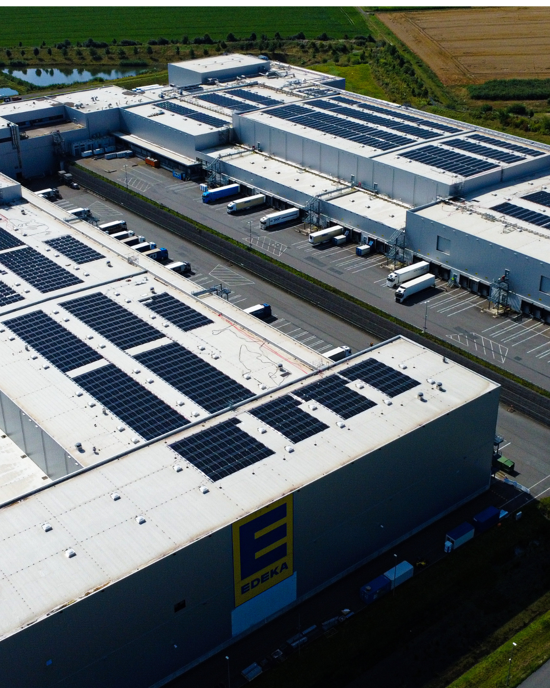 Jetzt geht es weiter: Die Elektroinstallation ist in vollem Gange, insgesamt 23 Wechselrichter werden verbaut, alle Strings entsprechend verlegt. Auch im Gebäude wird fleißig am Fortschritt gearbeitet. Mit der Fertigstellung der Modulverlegung ist ein großer Meilenstein in Richtung grüner Zukunft der EDEKA Minden-Hannover gelegt worden.
